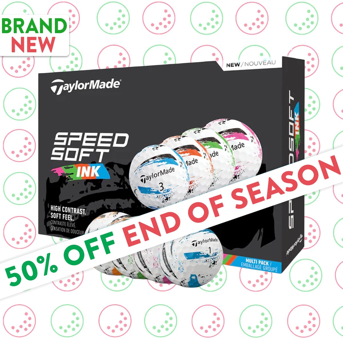 • 6 Dozen TaylorMade Speedsoft Ink golf balls.