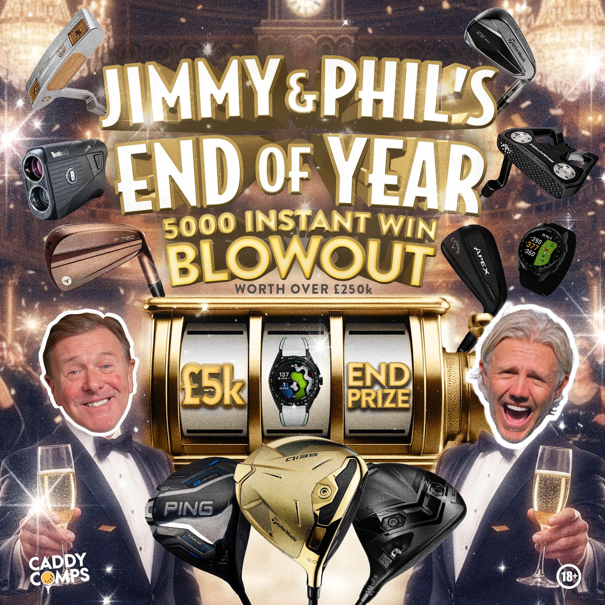 You could INSTANTLY win 85 2025 Drivers, 75+ Fairway Woods, 2025 Wedges, 2025 Bags, 2025 Balls from all the leading brands including Callaway, TaylorMade, Cobra, Mizuno, Titleist, Ogio & more.
