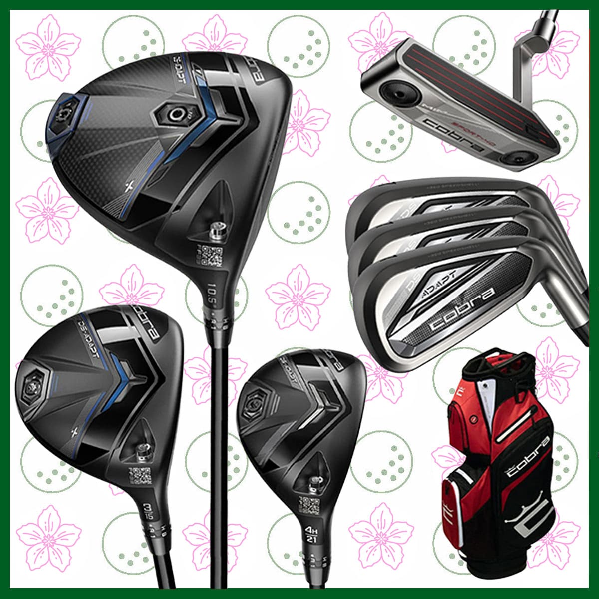 • Cobra DS Adapt: DS Adapt Driver, Fairway, Hybrid, Irons, MIM Putter, Pro Stand Bag