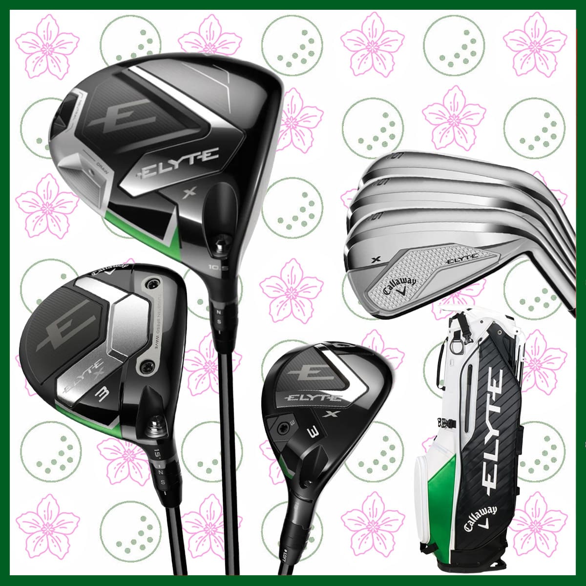 • Callaway Elyte: Elyte Driver, Fairway, Hybrid, Elyte X Irons, Odyssey Ai One Putter, Elyte Stand Bag