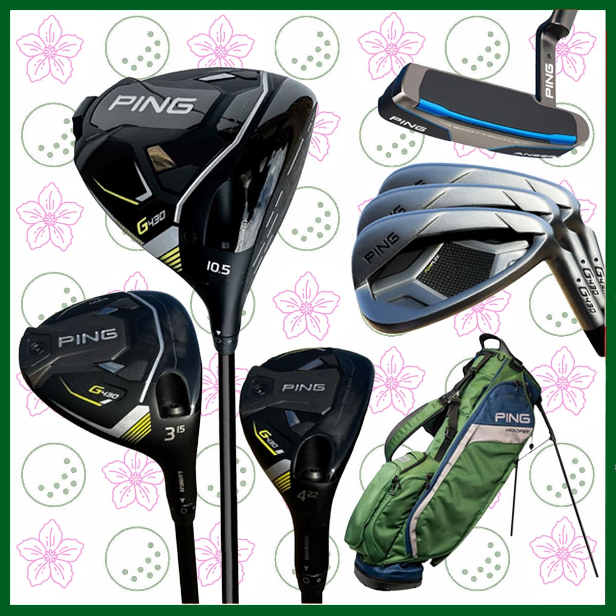 • Ping G430: Ping G430 Driver, Fairway, Hybrid, Irons, Anser Putter, Hooferlite Stand Bag