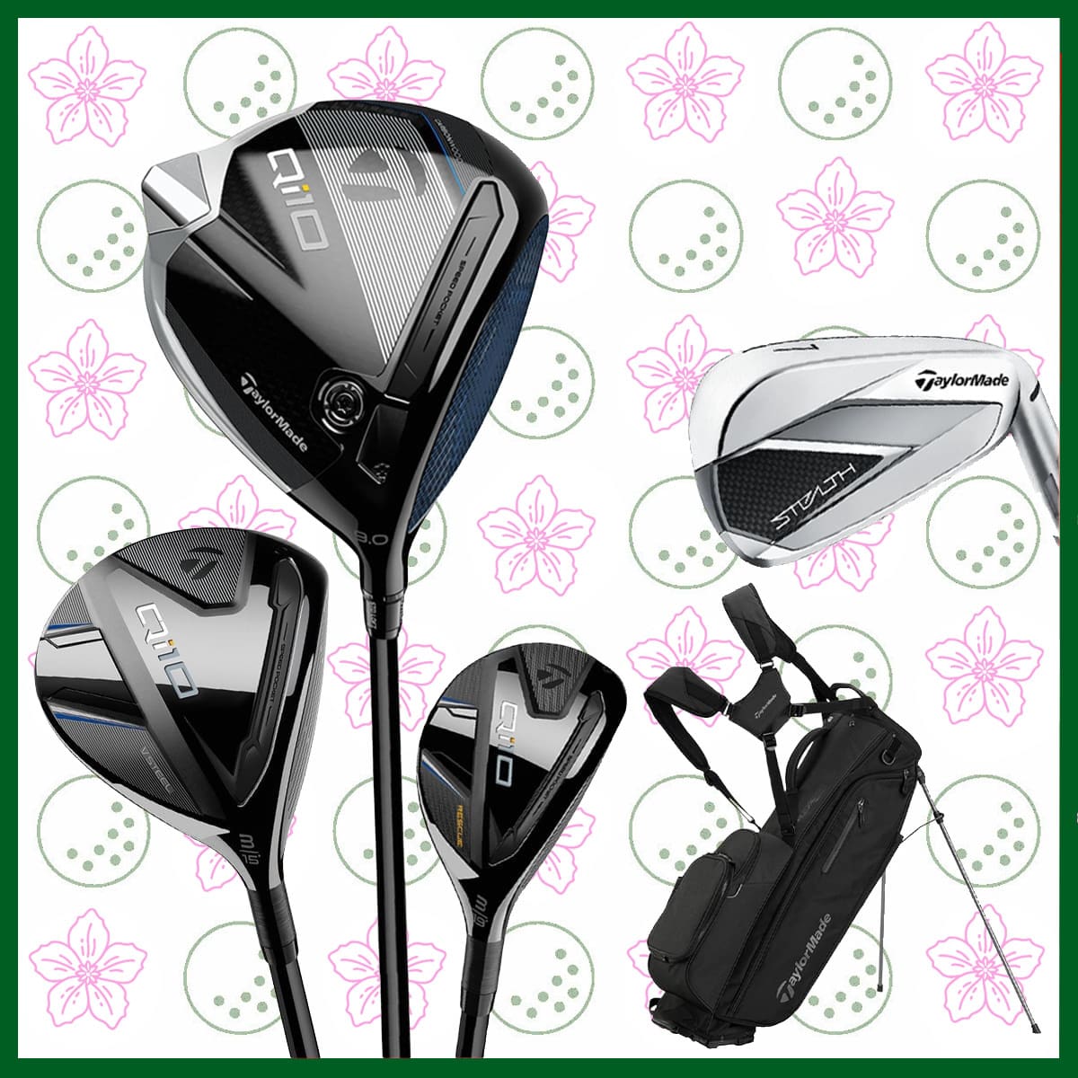 • Taylormade Qi10: Qi10 Driver, Fairway, Hybrid, Stealth Irons, Spider Tour Putter, Flextech Stand bag